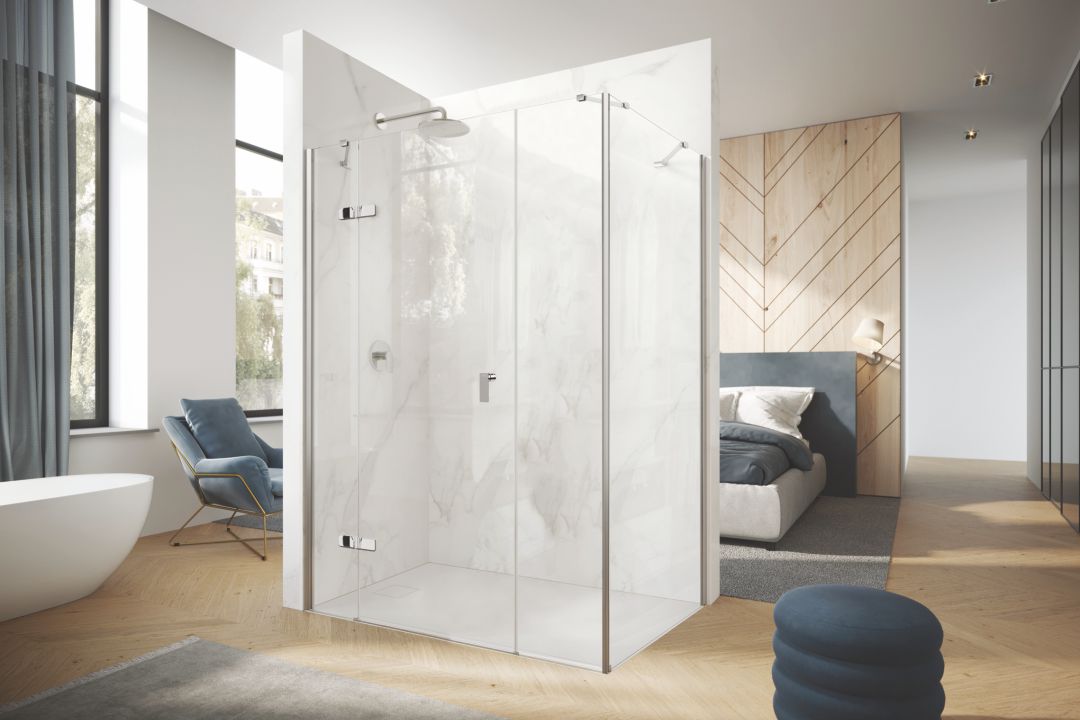• Stabilizační vzpěra, panty, madlo a prahová lišta vždy v chromu,
