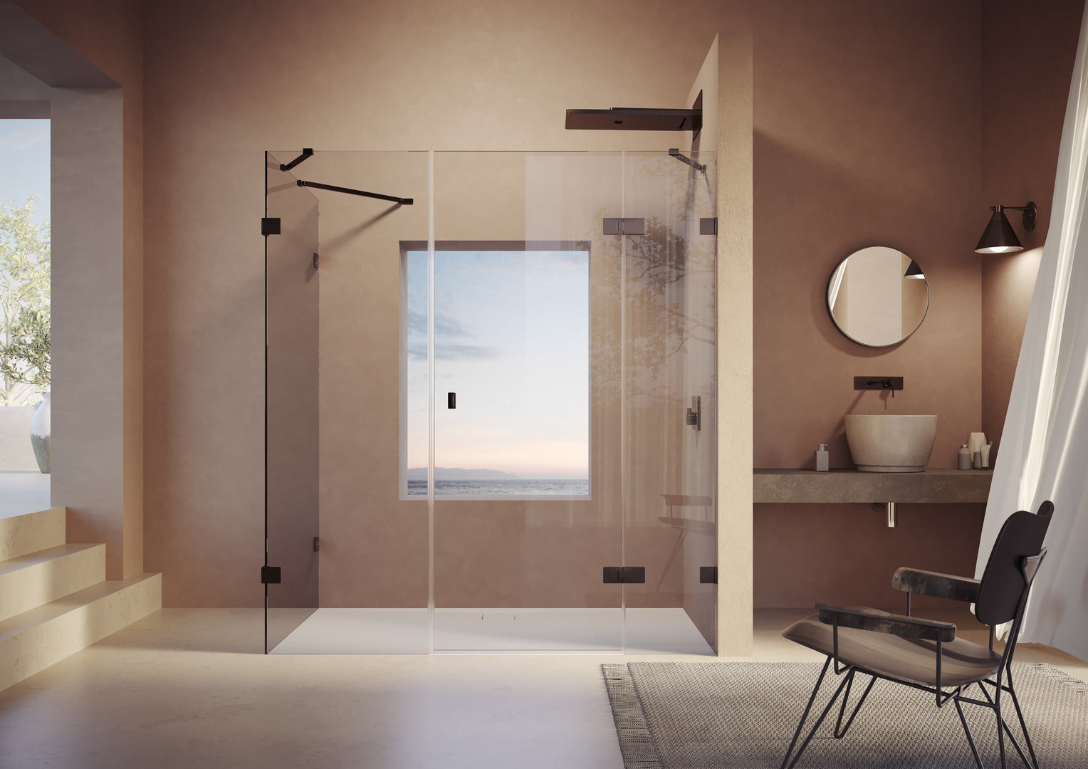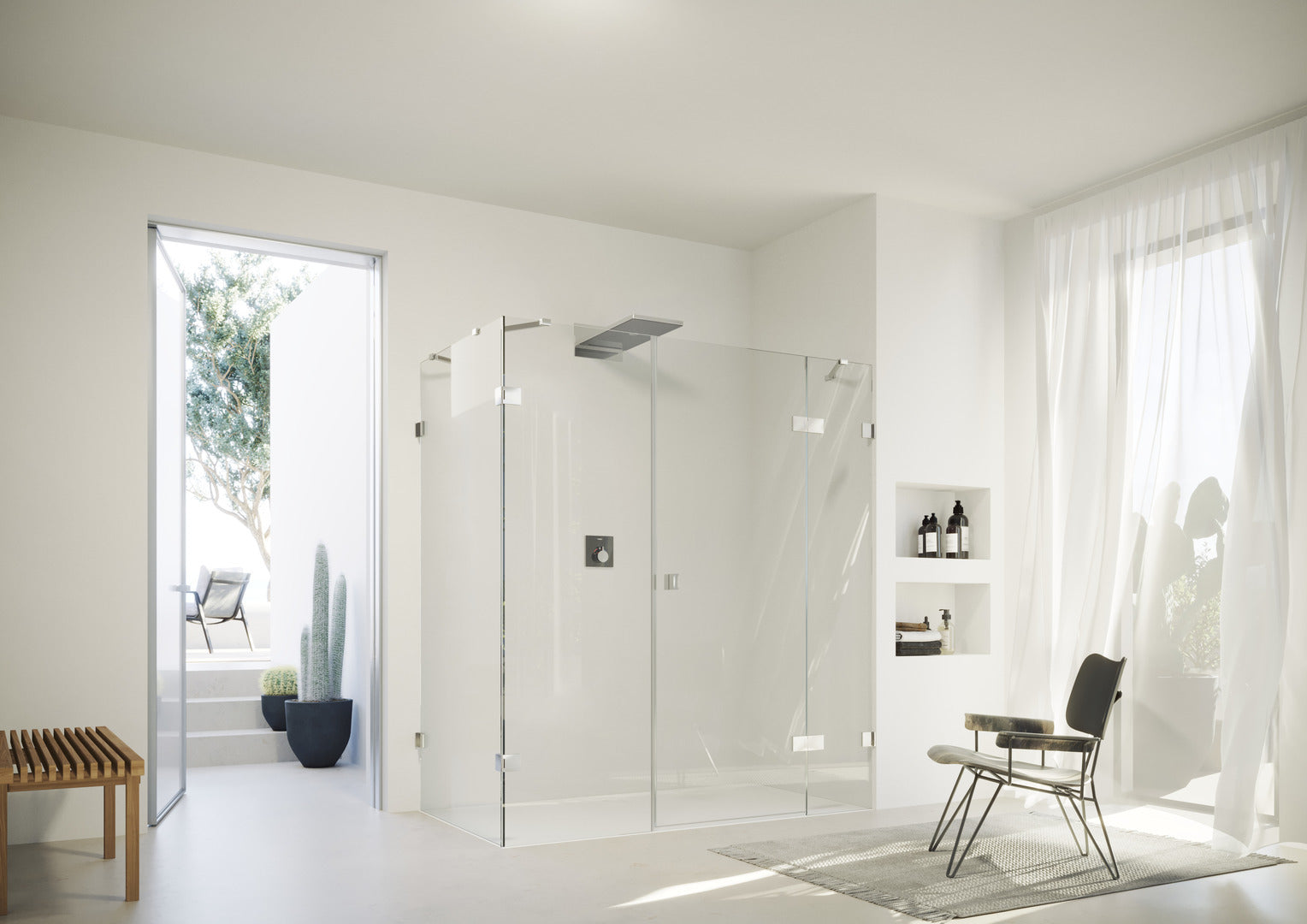 • Üvegezés 8 mm-es DIN EN 12150 szerinti egyrétegű biztonsági üveggel, opcionálisan könnyen ápolható HÜPPE Anti-Plaque felületnemesítő eljárással