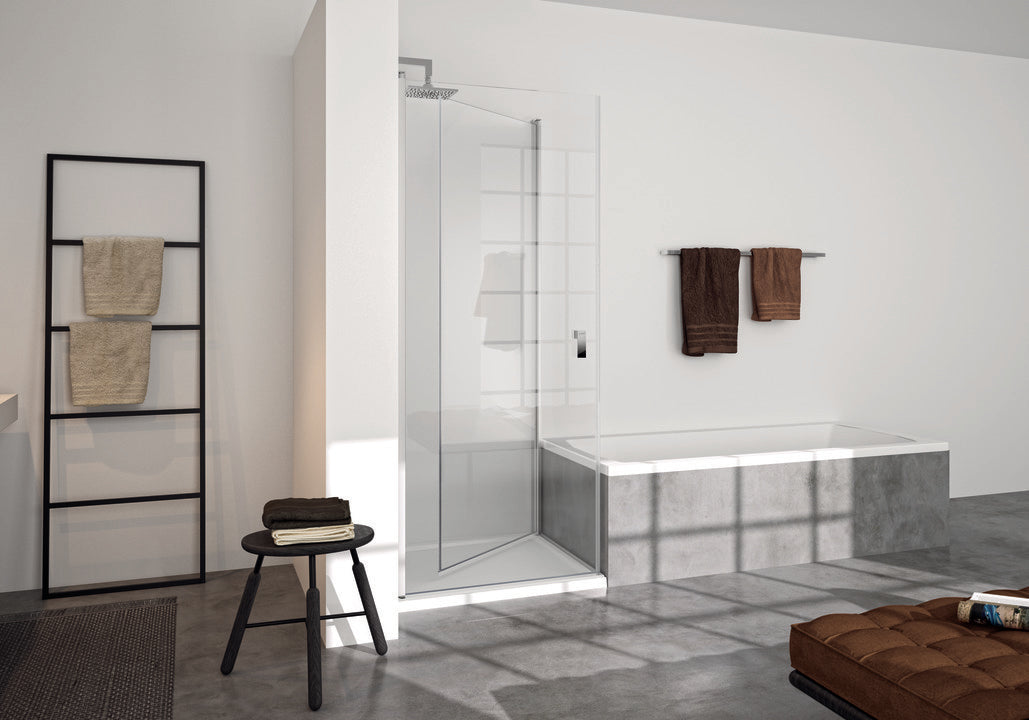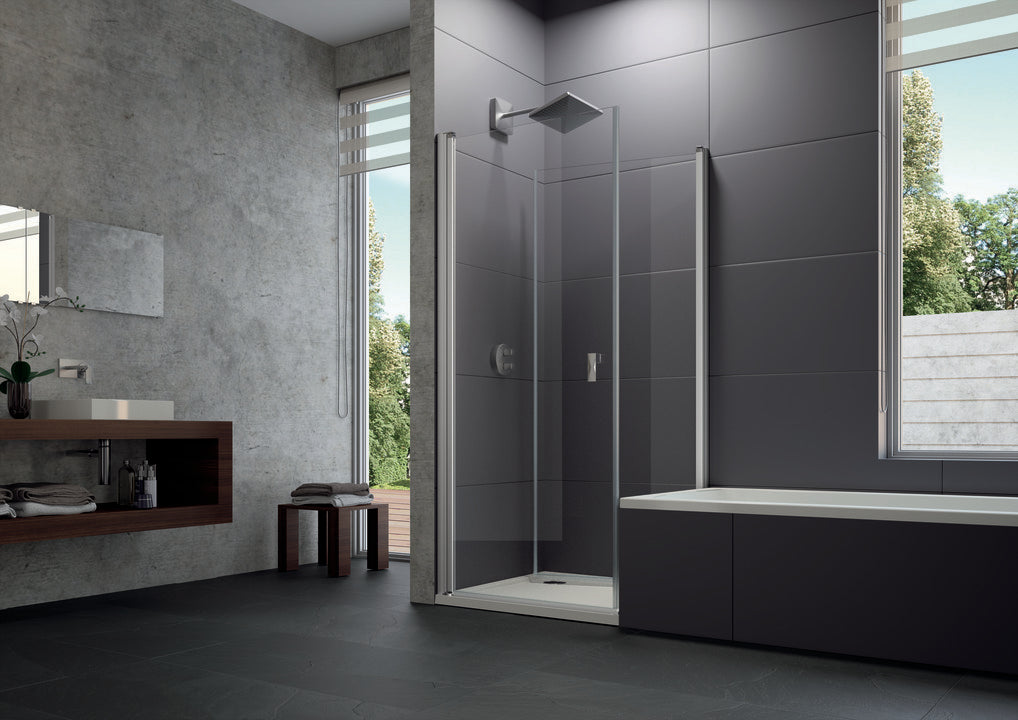 Side panel can be combined with swing door, swing door with fixed segment, folding swing door and folding swing door with fixed segment.