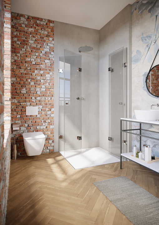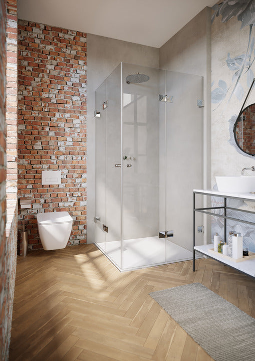 • Frameless corner entry each with two glass panels, can be swivelled 90°